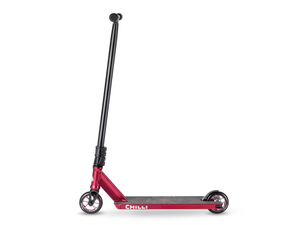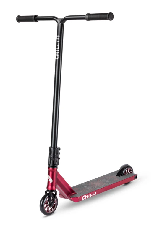 Der TNT ist der erste komplette Chilli Street Scooter Modell mit einem extrabeiten und flachen Aluminiumdeck, perfekt für Tricks an Curbs und Rails. Die hohe T-Bar aus Chromoly Stahl eignet sich besonders gut für große Rider. Außerdem verfügt der Scooter über eine 4-Bolt M8 Clamp mit SCS Kompressionssystem.