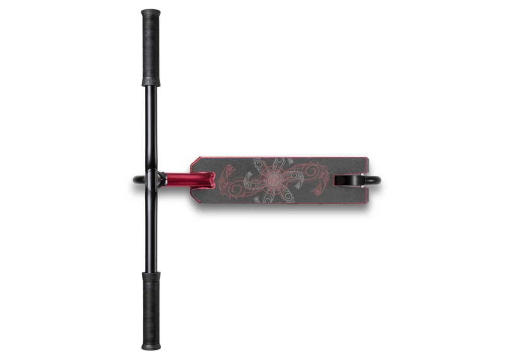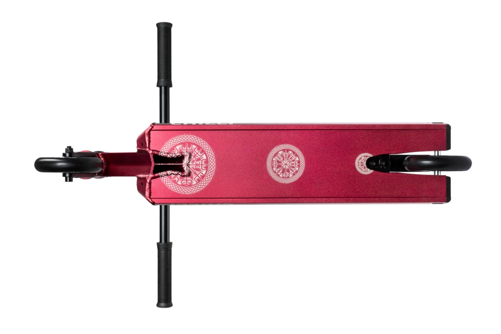 Die zweifarbigen 110mm Spoked Wheels runden das elegante Design perfekt ab. Für zusätzliche Stabilität wurde das Deck hinten mit einer Einlagefüllung ausgestattet. Das traditionelle keltische Design und die gerippte Fork machen den Scooter zu einem besonderen Hingucker.