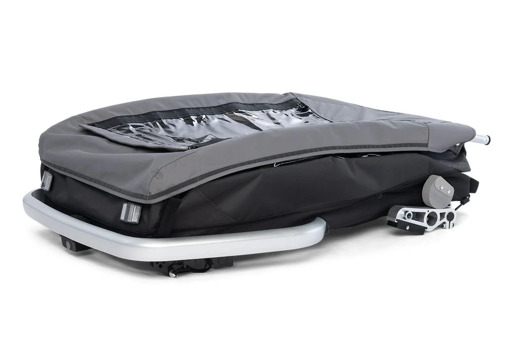 Kinderfahrradanhänger mit 2 Sitzplätzen. 2in1: inkl. Fahrrad- & Buggy-Set. Mit Croozer AirPad® Federung. Farbe: Mountain grey.