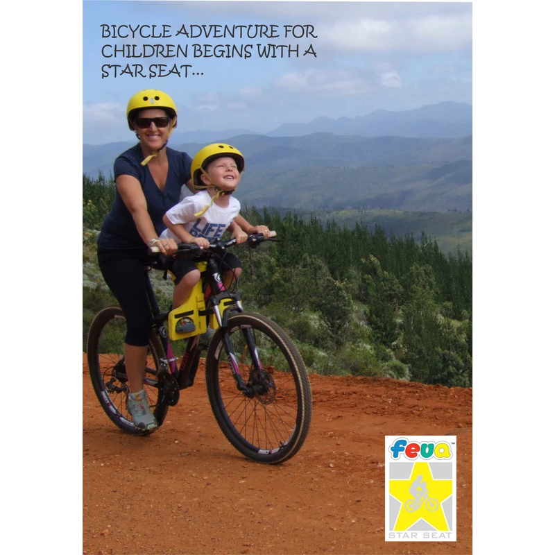 Der Feva Star Sear macht die Radtour mit der Familie zu einem noch nie dagewesenen Erlebnis für Eltern und Kind. Der Sitz wird auf dem Oberrohr befestigt und das Kind sitzt somit sicher zwischen den Beinen des Elternteils.