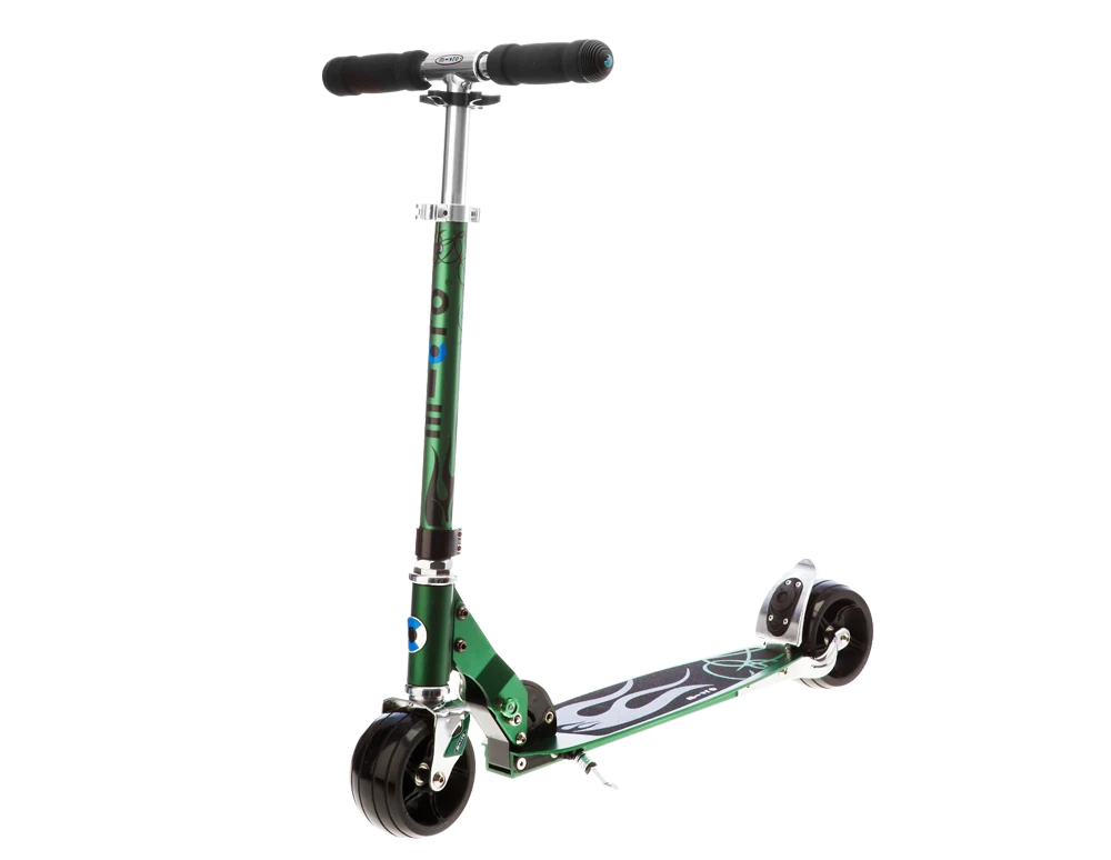 Definitiv der Offroader unter den micro Scootern! Mit seinem auffälligen Design und seinen extrabreiten Rollen sorgt der micro rocket für staunende Blicke und ein spezielles Fahrgefühl. Im Gegensatz zum Scooter micro speed+ ist der micro rocket für das langsame Cruisen in der City entwickelt worden, denn mit seinem auffallenden Flammen-Tattoo-Design ist er definitiv ein Hingucker und zieht alle Blicke auf sich. Das Tattoo-Design findet sich aber auch auf der Lenkstange wieder, sodass der Scooter zu einer stylischen Einheit wird. Das extra breite Trittbrett mit Griptape passend zu den extra breiten Rollen und breiten Bremse verstärkt die Optik des Scooters micro rocket. Durch seinen dreifach gesicherten Klapp- und Schließmechanismus gewährleistet er höchste Sicherheit und ist trotz alledem einfach und schnell zusammenklappbar. Zusätzlich ist ein integrierter Kick-Ständer zum Parken des Scooters vorhanden. Für alle, die nicht nur auf Asphalt, sondern auch auf Pflasterstein cruisen wollen, ist er der ideale Tretroller in der Stadt und auf dem Schulweg.