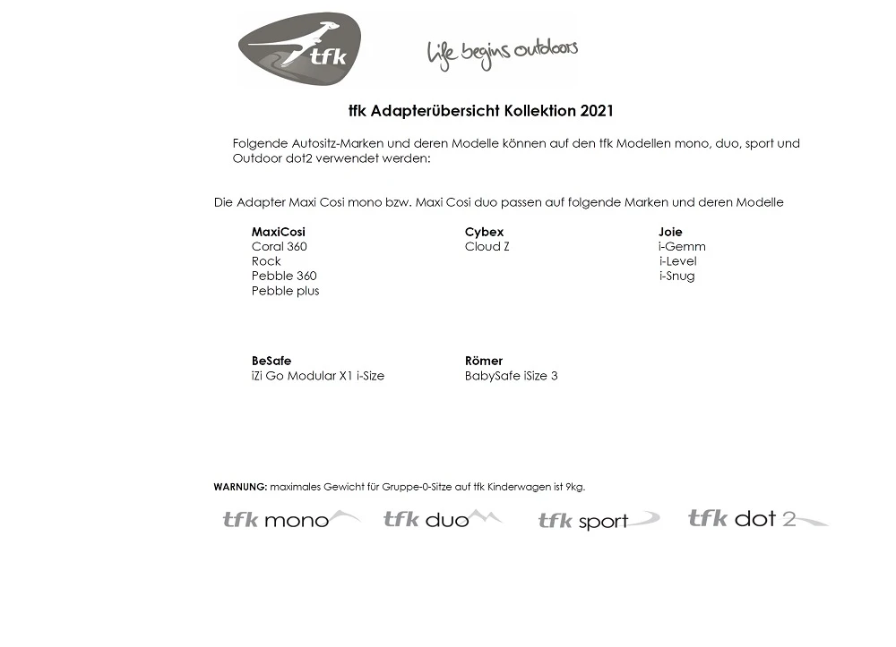 TFK Adapter für mono Kinderwagen – neues Modell 2022