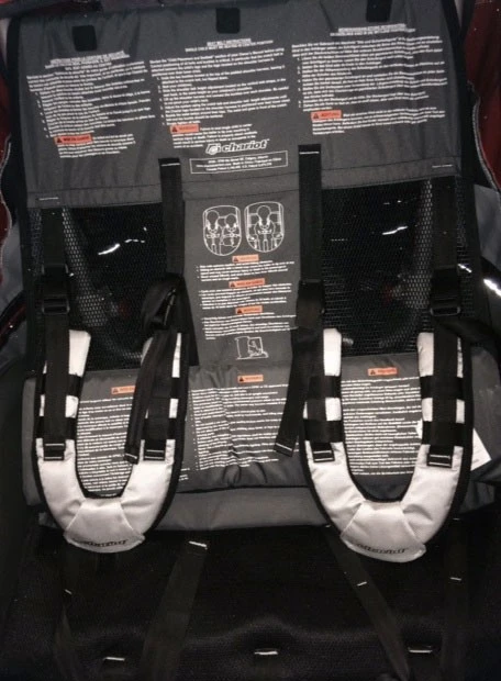 Da die Sitze über das obere Querrohr gezogen werden, stehen die Kletts rechts und links für das Hochhalten der Sicherheitsgurte nicht mehr zur Verfügung.